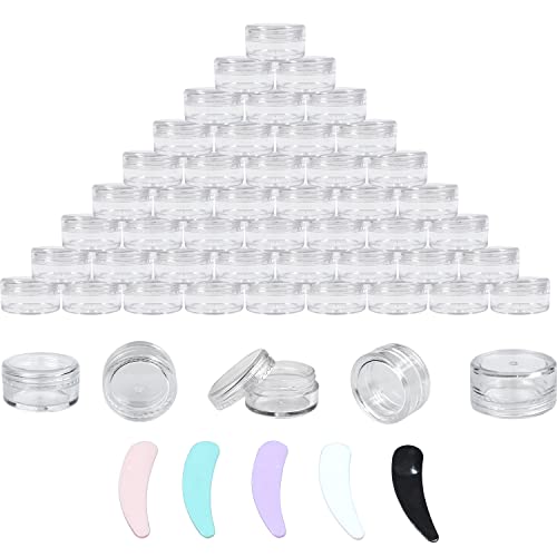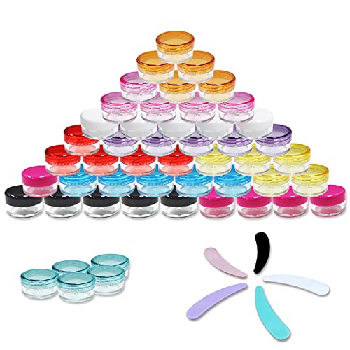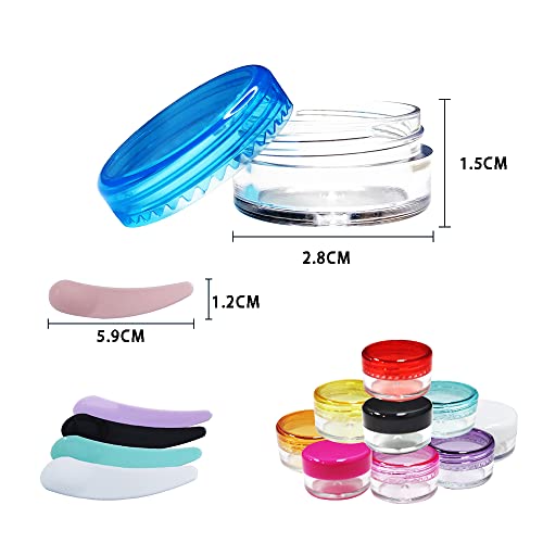 - Sample Pots Set:You will receive 50 PCS clear containers pots,10 Colours Lids and 5 Spatula,the bottles are clear can helping you to quickly distinguish and get what you want