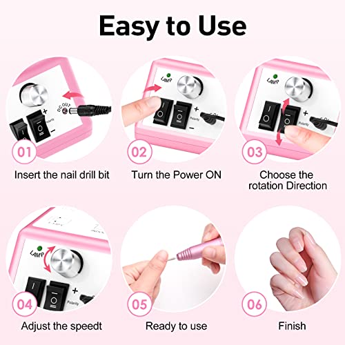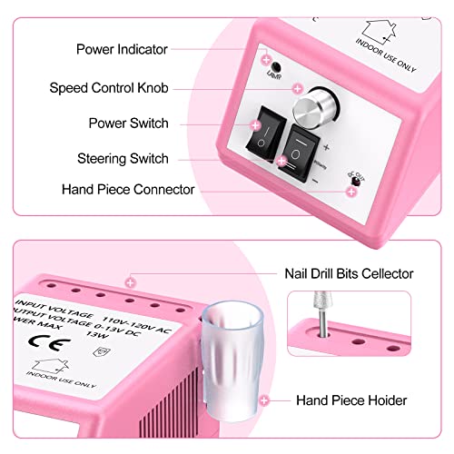 - Powerful Varying Speed Nail Drill Machine: Max speed up to 20,000 RPM, efficient for natural acrylic nails, gel polish dip powder nails and cuticle removal. Adjust speed with control knob, twist lock chuck system for easily change nail drill bits