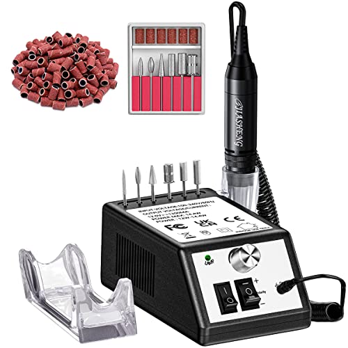 - Convenient Electric Nail File: Switch for forward and reverse for both left and right handed user, adjustable speed for optimal use. Suitable for 3/32” nail drill bits, equipped with a plastic holder for convenient use