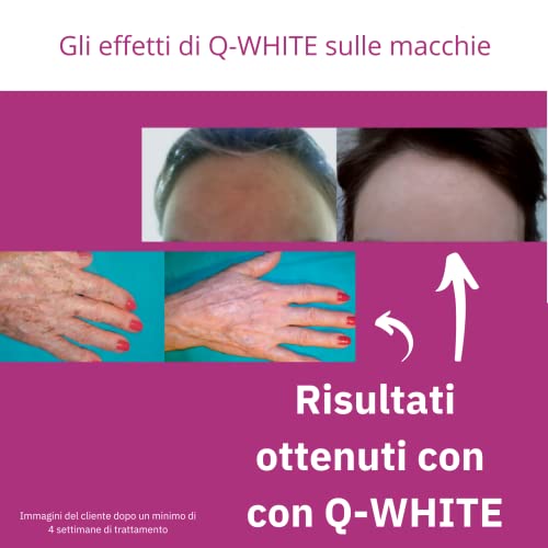 - RESULTS IN ONLY 4 WEEKS: Effective on skin spots due to hyperpigmentation, hyperchromia and melasma: the treatment produces a visible result in 4 weeks of use (cell replacement cycle time). Q-White is also useful in summer to prevent the appearance of sunspots