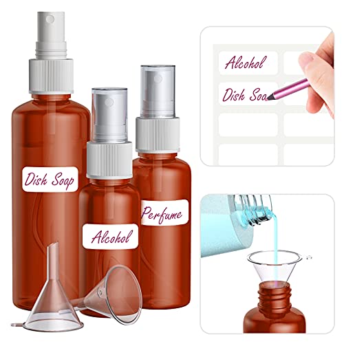 - *【Easy to Use】Comes with 2 funnels and 1 label sticker. These labels are very helpful in distinguishing the contents of each spray bottle. The funnel makes filling easy and reduces waste.
