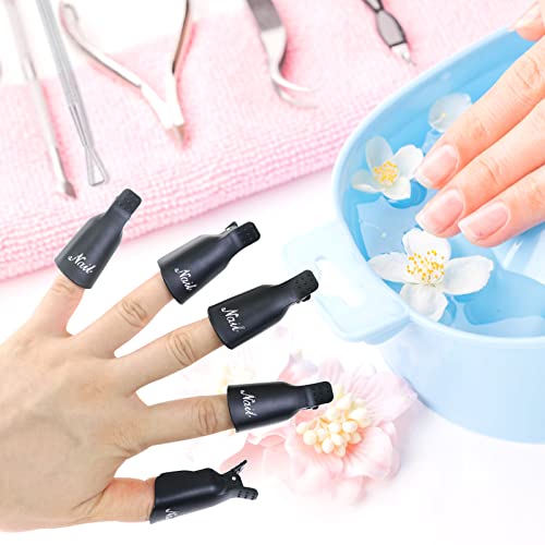 - Nail polish remover tools set: 10 pcs black nail art soak off clip remover tool, this clips beats the traditional cotton balls/foil treatment, could put them all on yourself with not having to use foil. 10 minutes and the shellac comes right off. Package includes 1pcs cuticle peeler, 1pcs dual ended cuticle pusher, this professional manicure tool allows you to gently scrape gel polish from the nail surface without causing damage or pain.