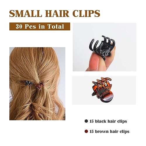 - Package Includes: The item you will get 30 packs hair claw clips in total, 15 pieces each color, black and brown. The hair clips kit is enough for your spare and replacement in daily life.