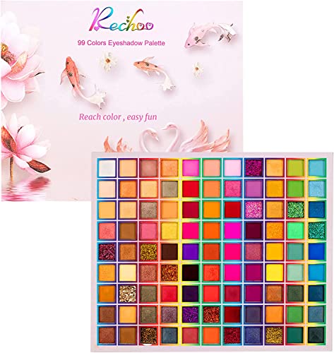 Rechoo 99 Colors Matte & Glitter Eyeshadow Palette, Colorful and Bright Color Eye Make-up Palette, Professional & Long-lasting Make-up Eyeshadow
