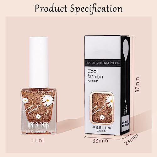 - 【Environment & Healthy】 Glitter nail polish is made of natural resin, healthy chemical materials, environment-friendly, non-toxic formula. No harsh ingredients or adhesives with no smell, rich color, middle consistency, self-evenly, no shrink and edge.