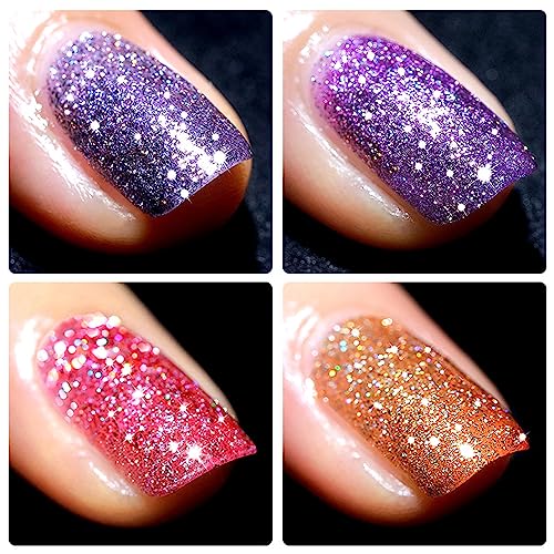 - 【Sparkle Glitter Nail Polish】 The shiny effect of sparkle nail polish under different lights will be different.