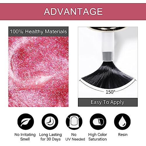- 【Odorless Gel Nail】 This glitter nail polish includes raspberry ingredients, make this healthy nail polish has no harsh odor and much more pleasant to apply and wear.