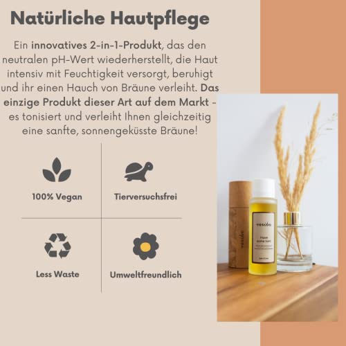 • Naturally tanned skin - thanks to the carefully composed ingredients of our face toner, you will get sun-kissed skin in just a few hours without exposing it to the sun. The effect is identical but much healthier than a sun tan. The fresh, floral fragrance makes the application of our facial toner very pleasant and refreshing.