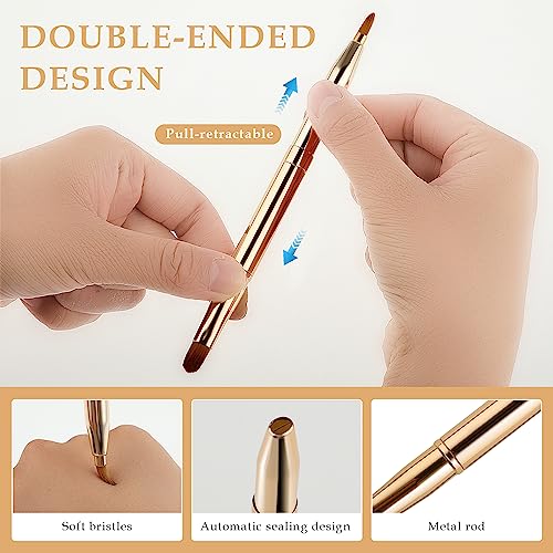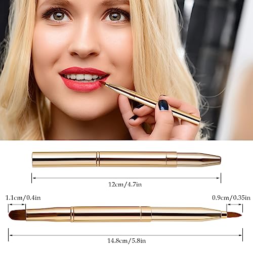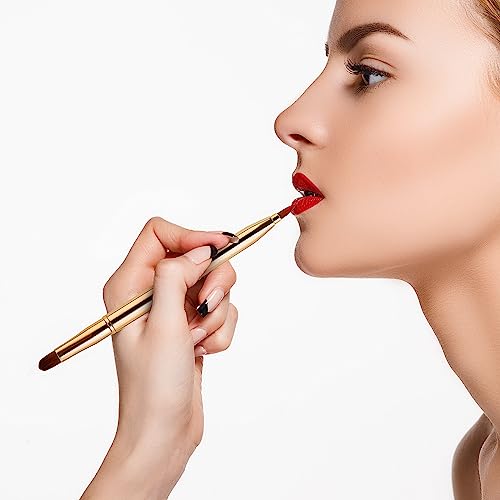 - [Dual-ended Design] Lipstick brushes have double heads. The pointed retractable lip brush is used to contour the lips and apply lip detail. Rounded flat makeup brush is used to apply large areas of the lips, or as an eye make-up brush or concealer brush.