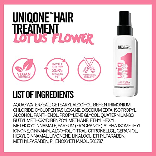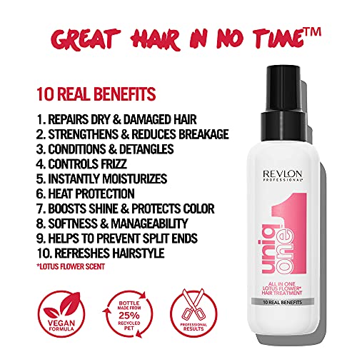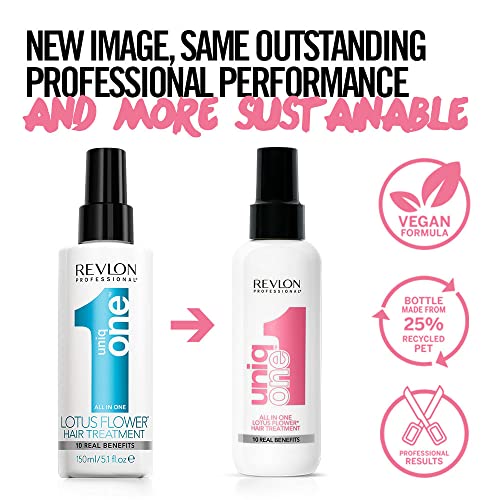 Revlon UniqONE Professional Leave In Conditioner, Gifts For Women / Men, Vegan Hair Treatment For Shine & Frizz Control (150ml) Lotus Flower Frag