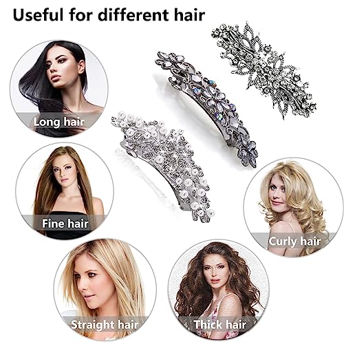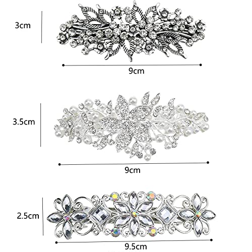 - ★【Hair Barrettes Set】3 different styles of silver barrette hair clips in a package. With virous characteristics, rhinestone hair slides can be matched with different dresses and hairstyles, meet your different needs, creating a variety of hairstyle