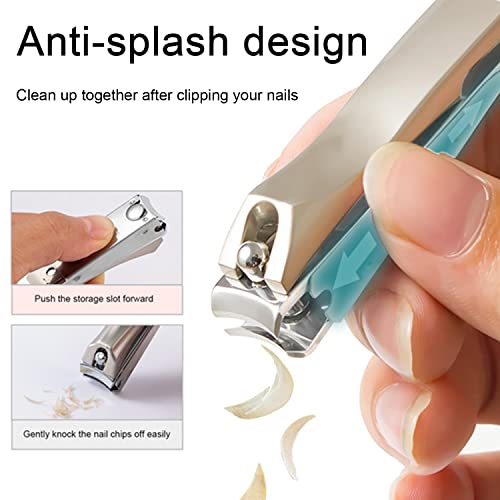 - Anti-splash design: nail clippers with anti-splash function, effectively prevent nail chips from splashing, make cleaning and storage easier, prevent eye injuries. These are smartly designed to keep all your nail clippers in one tidy place, making it one of the best nail clippers with catcher.