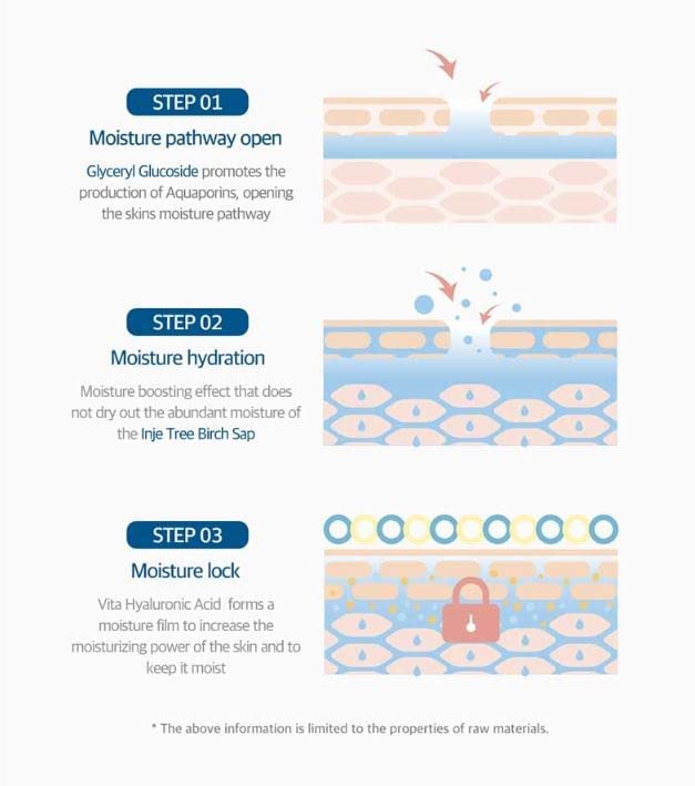 - White birch water and Vita hyaluronic acid provide moist moisture to dry skin and protect UV-stimulated skin to care for healthy skin.