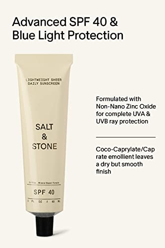 SALT & STONE SPF 40 Lightweight Sheer Daily Sunscreen Moisturizer for Face | 100% Mineral & Oil-Free | Helps Protect From Blue Light | Cruelty-Fr