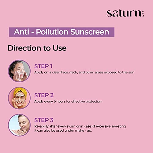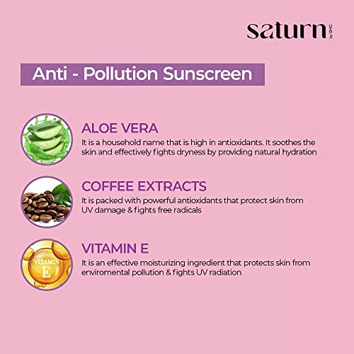 Saturn by GHC Broad Spectrum Uva & Uvb Protection Anti-Pollution Sunscreen Cream Spf 50, Pa++, Sls-Free, Paraben-Free, 100% Vegan - 50 G (Pack Of quantity
