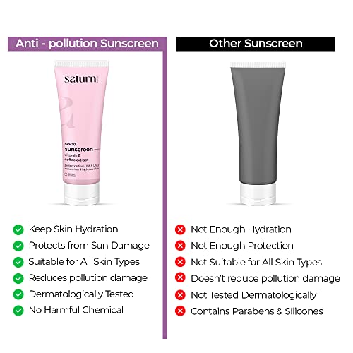 Saturn by GHC Broad Spectrum Uva & Uvb Protection Anti-Pollution Sunscreen Cream Spf 50, Pa++, Sls-Free, Paraben-Free, 100% Vegan – 50 G (Pack Of