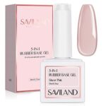 Saviland 5-In-1 Rubber Base Gel for Nails, 15ML Sheer Pink Builder Base Gel Color Gel Nail Polish Foundation Gel Strengthener Gel Nail Rhinestone
