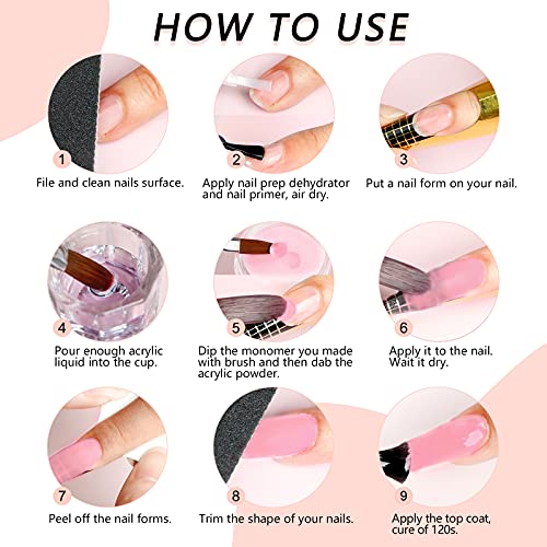 • ❤【NO NEED NAIL LAMP CURE】 This professional acrylic nail system does no need nail lamp to cure that save your time and this pink acrylic nail powder only need several steps working with Saviland acrylic liquid monomer to do nails extensional and 3D nail art design.