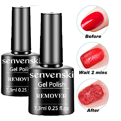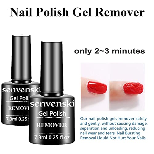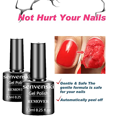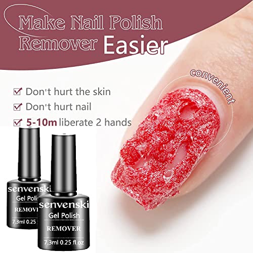 - QUICK REMOVE: Senvenski Gel Nail Polish Remover can easily remove gel polish from nails, Just lightly smear, and wait for 3-5 minutes, the nail surface will automatically burst, and then remove it gently with a small steel pusher. You no longer need to go to a professional nail salon to complete it. Save your time and money.