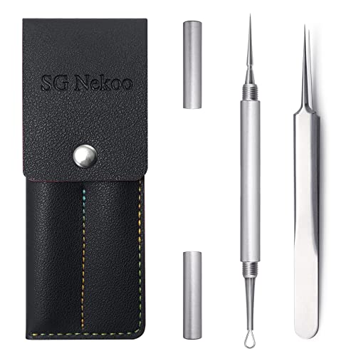 SG Nekoo Professional Facial Milia Removal Tool & Whitehead Extractor, High Grade Stainless Steel Double Ended Needle Tweezers Kit,Blemish,Zit Pi