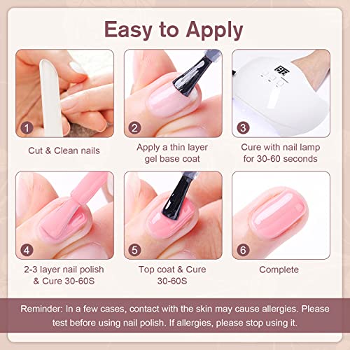 - Soak UV/LED lamp: The gel nail polish set needs to be cured under the LED/UV light. The time of the LED light is 60-90 secs, and the UV light is 2-4 mins. Suitable for natural nails, UV gel nails, false nails, acrylic nails, nail tips etc.