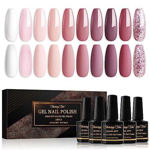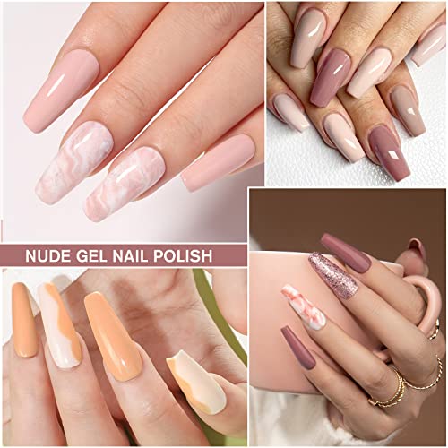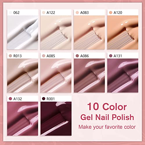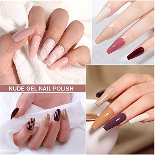 - Nude Series Nail Polish Gel: 10pcs gel nail polishes in different colours, white beige nude pink champagne brown, 8ml/0.27oz per bottle. gel nail polishes
