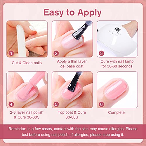 - Soak UV/LED lamp: The gel nail polish set needs to be cured under the LED/UV light. The time of the LED light is 60-90 secs, and the UV light is 2-4 mins. Suitable for natural nails, UV gel nails, false nails, acrylic nails, nail tips etc.