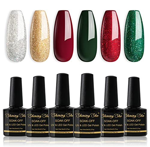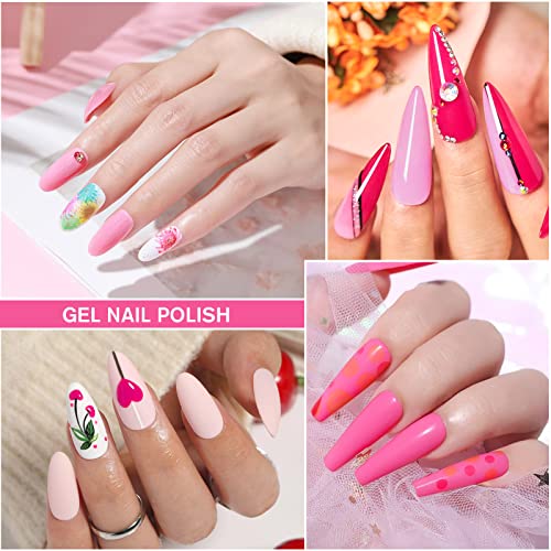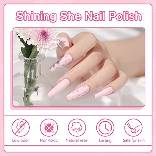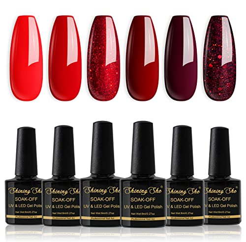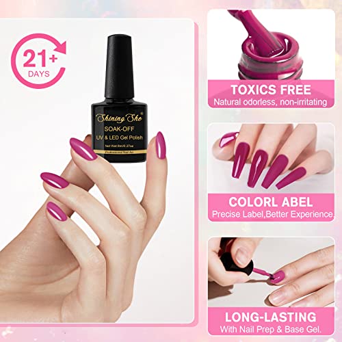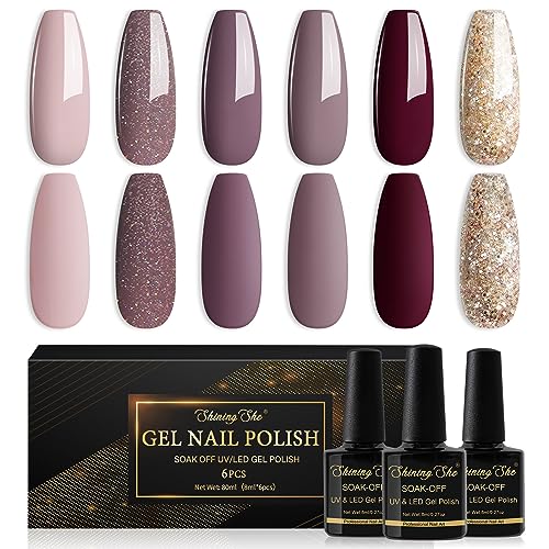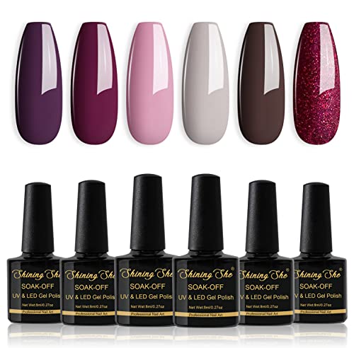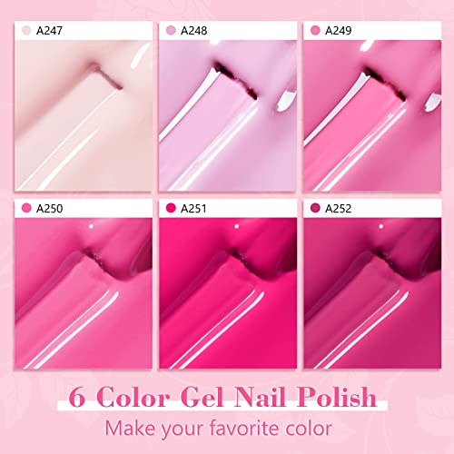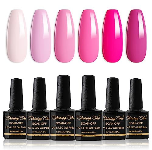 Shining She Gel Nail Polish Set Pink, 6 Colors Pink Rose Gel Polish Kit Soak-Off UV/LED Blue Series Nail Polish Gel Gift for Nail Art Salon DIY H