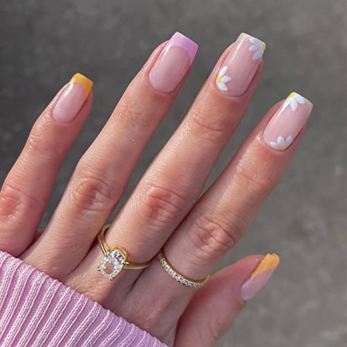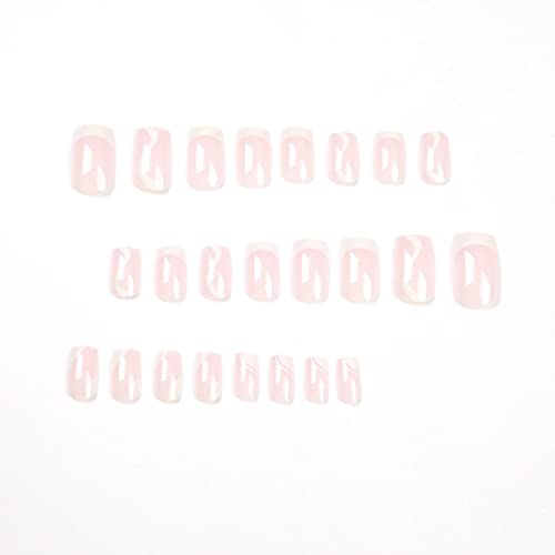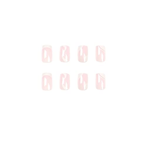 Home Nail Care Short Press on Nails with Swirls Design White Full Cover Nails Square Fake Nails for Women and Girls(24PCS)