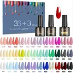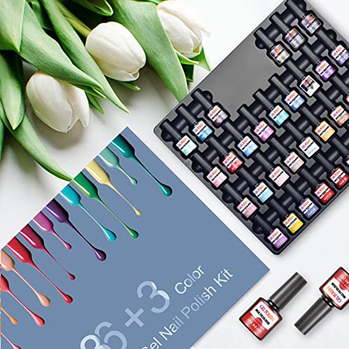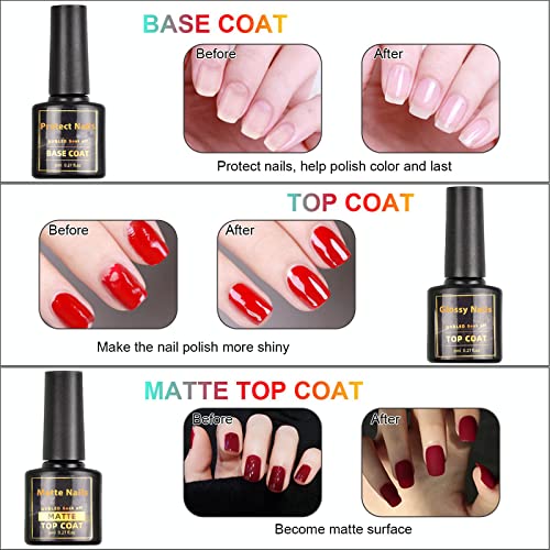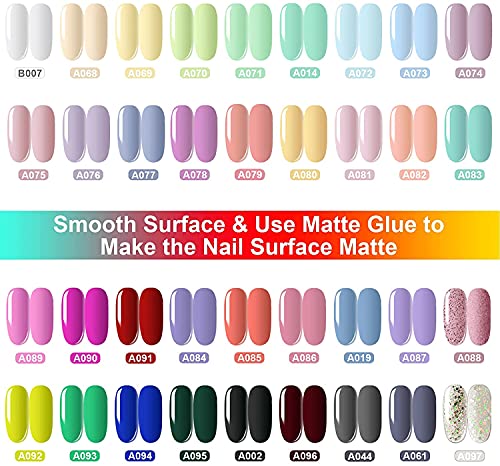 - 36+3 Gel Nail Polish Set: Include 36 colors gel polish (8ml each bottle), 3 No Wipe Base Coat and Glossy & Matte Top Coat Nail Polish. (8ml/each bottle). The gel nail polish set series shades suitable for all seasons (spring, summer, fall, winter); Include 2021 popular trendy colors, such as green, nude, gray, white, pink, red, lavender, blue, etc.