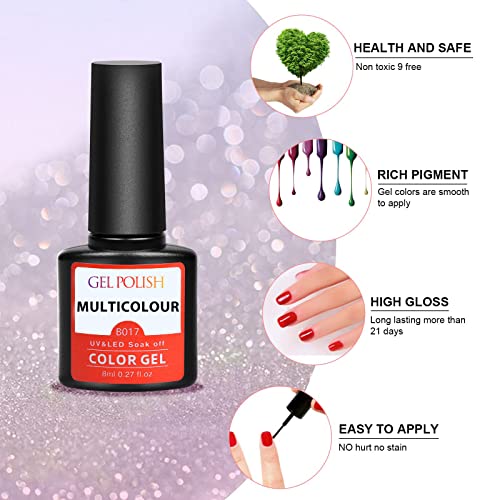 - Fast Curing & Long-Lasting: The UV&LED soak off nail polish gel set will keep vibrant shine least 21+ days with proper application; Need to be cured under uv led light; Gel base and top coat required. Average for LED 60-90 secs. Suitable for all kinds of nails styles; Achieve the best gel nail polish salon experience from the comfort of your own home with affordable price. Ideal for professionals and home users.