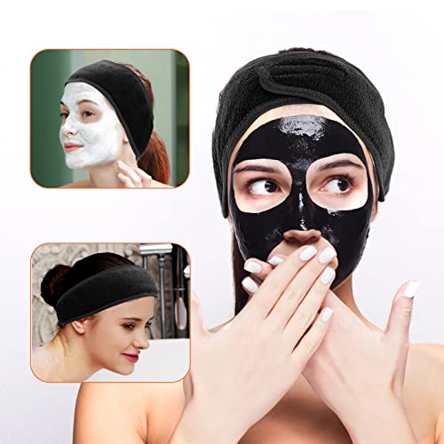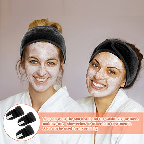 Sibba 3 Pack Spa Headband, Adjustable Headband for Face Wash Makeup Beauty, Facial Loop Yoga Headband Self-Adhesive Towel (Black)