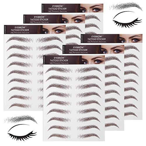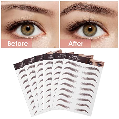 Sibba 4D Hair-Like Eyebrow Tattoos Stickers 6 Sheets Brown Waterproof Temporary Brow Colors Transfers Sticker Peel Off for Eye Makeup Supplies Gr