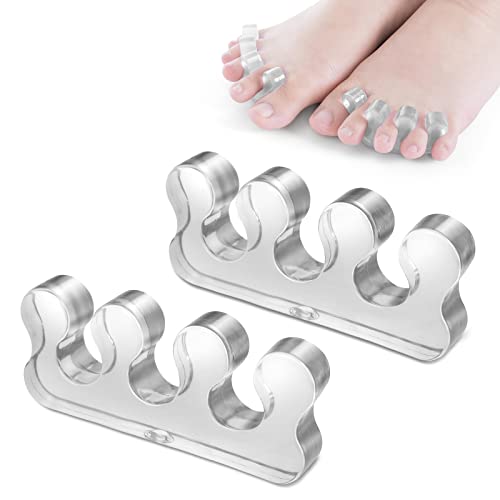 - 【Easy to Use】Simply place the toe separators between each of your 5 toes with the solid part remaining underneath your foot. The spacers are made of flexible, medical grade gel and their unisex design fits most feet for both men and women. They are also latex free which makes them allergy friendly and perfect for sensitive skin.