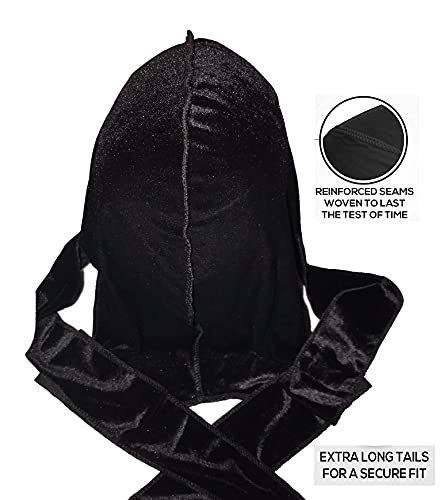Silky Durag Velvet Black, Luxury Velvet Durags for Men and Women, Headwraps, Bandana Perfect for Dreadlocks, 360 Waves, Curls