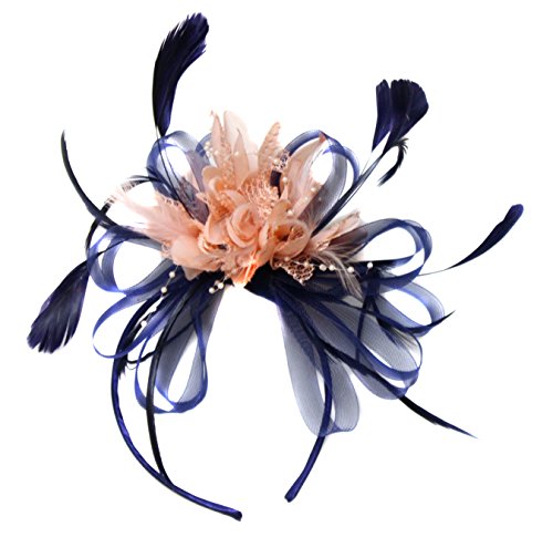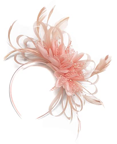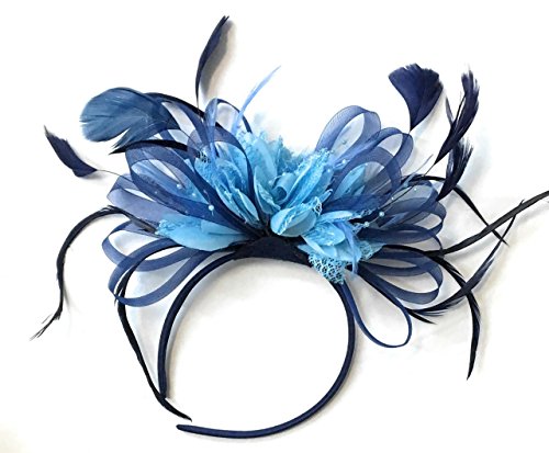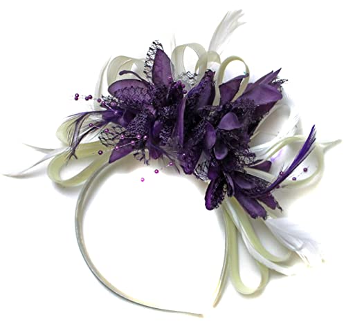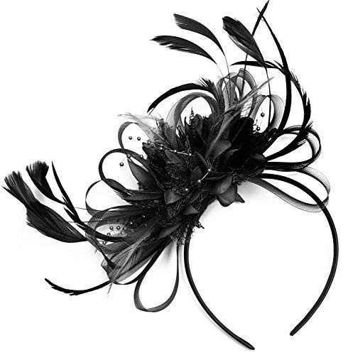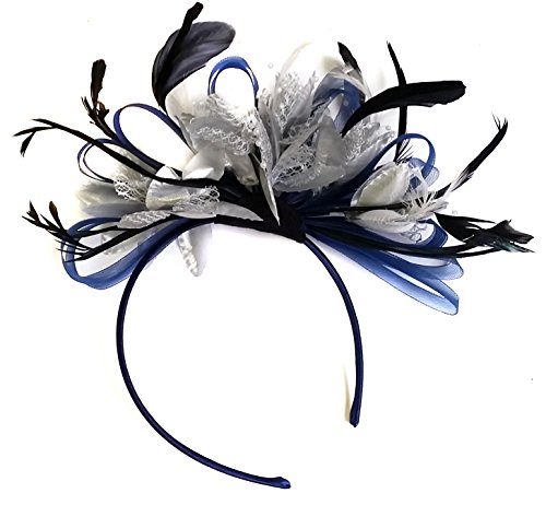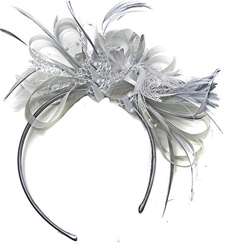 Silver Grey Net Hoop Feather Hair Fascinator Headband Wedding Royal Ascot Races, Unisize, Silver