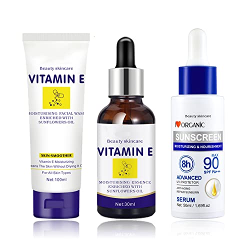 • ❀【Skincare Gift Set】: This 5-piece beauty skincare routine contains our facial Cleanser,Toner,Serum,Eye Serum,Essence Serum.Formulated to gently unclog pores and soothe redness while also protecting the skin from sun damage. helps to tackle the 5 early signs of dehydrated skin: dryness, dullness, dry dehydration lines, tightness, and roughness