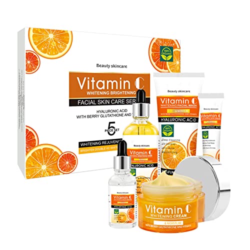 Skincare Gift Set for Her,Vitamin C Skin Care-With Hyaluronic Acid&Vitamin C,5 Piece Skincare Routine -Cleanser, Face Serum, Face Cream, Essence Skincare Gift Set for Her,Vitamin C Skin Care-With Hyaluronic Acid&Vitamin C,5 Piece Skincare Routine -Cleanser, Face Serum, Face Cream, Essence