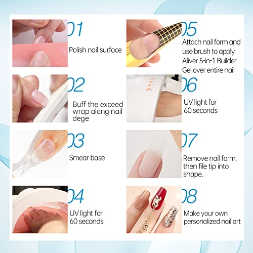 SmddxBuilder Gel, 5 in 1 Nail Builder Gel, Base Gel Strengthener Gel Without Builder Gel Nail Forms For Nail Art Decoration, Professional Manicur
