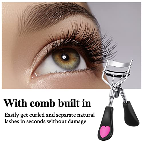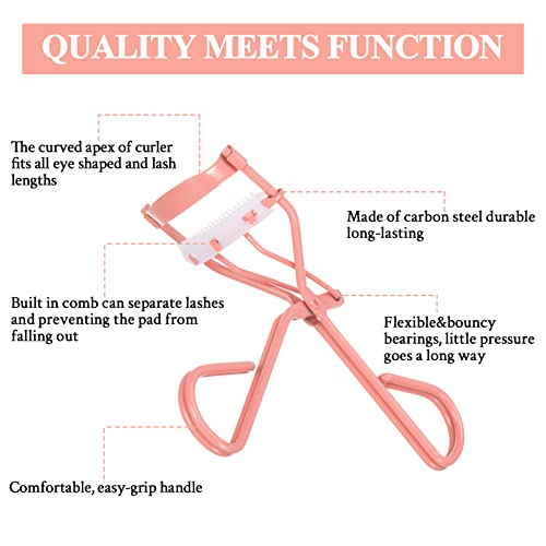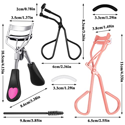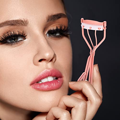 - Professional Eyelash Curler Kit: You will receive 1 x pink eyelash curler with comb, 2 x eyelash curler pads, 1 x black wide angle eyelash comb curler, 1 x eyebrow brush, 4 x refill pads, and 1 x stainless steel lash curler. The 5-in-1 eyelash curling tool kit includes 3 sizes of lash curlers will help you achieve naturally beautiful lashes in seconds.
