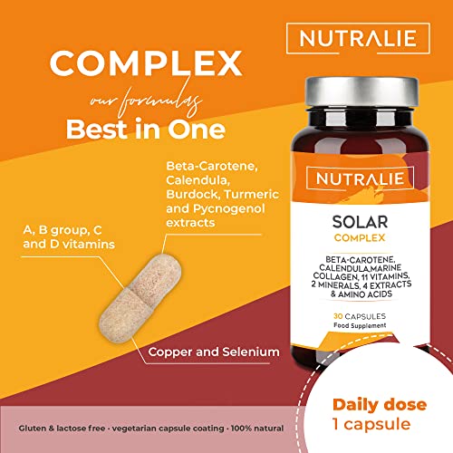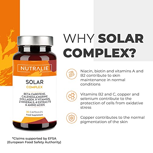 - 💪TAN, PROTECT AND CARE FOR YOUR SKIN: Thanks to the unique combination of vitamins, such as vitamin A and vitamin C, Solar Complex contributes to normal skin pigmentation. It also contains vitamin B2 and copper, which contribute to the protection of cells against oxidative damage.