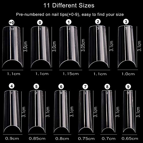 - QUANTITY AND SIZE: 110 Pieces clear coffin acrylic nail tips. 11 different sizes to choose, which are individually numbered +0 - 9, They're easy to distinguish, and convenient to choose the suitable size that fits your every finger.