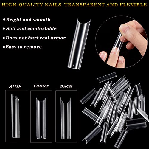- SIMPLE OPERATION: The clear acrylic nail tips are easy to shape, file, paint, and apply with glue and nail polish decorations. They look very natural and nice holding the color without streaking after painting the nail polish or applying acrylic. These c-curve shape Crystal Nail Tips are easy to apply and blend fabulously with all skin tones.