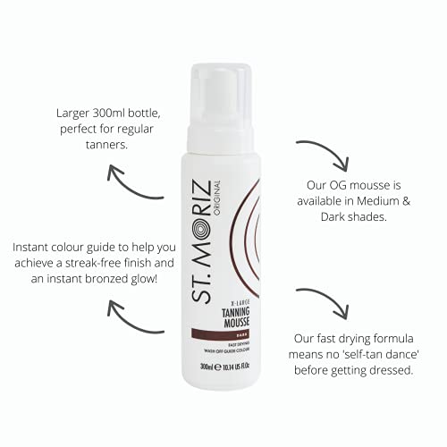 St Moriz Original Extra Large Instant Tanning Mousse, Fast Drying Vegan Fake Tan, Dark, 300 ml