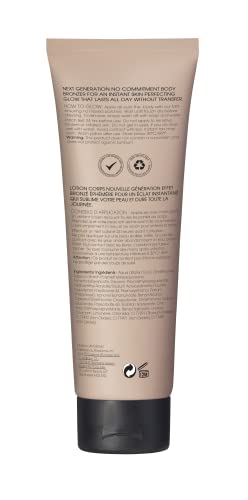 - Next generation, no commitment body bronzer for an instant skin perfecting glow that lasts all day with streak-free results that are transfer and water resistant.