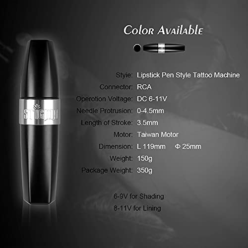 - ✶GOOD FOR LINING AND SHADING: Stigma rotary tattoo pen, the working voltage is 6-11V, and the maximum tolerable torque is 189.3g.cm. The surface is frosted, the stroke of the needle is 0-4.5mm, the length of the needle is 3.5mm, and the RCA interface.
