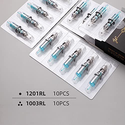 - ✶20 PCS STERILIZED TATTOO CARTRIDGE NEEDLES: Stigma tattoo machine kit contains 20 tattoo cartridge needles. (1003RLx10pcs, 1201RLx10pcs) All disposable needles have passed CE certification and are pre-sterilized by E.O. Gas. The date indicate on each package, provide absolute protection for your tattoo art.