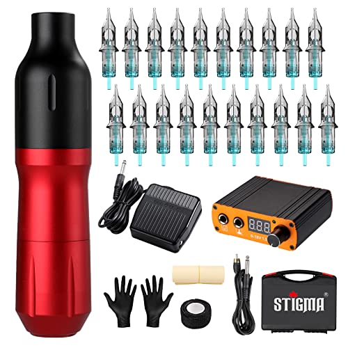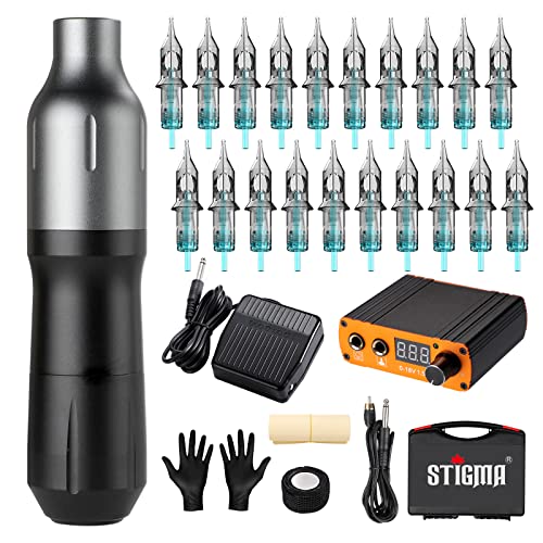 STIGMA Tattoo Rotary Machine Kit Complete Tattoo Pen with 20Pcs Cartridges Needles Digital Display Power Supply Tattoo Kit with Plastic Box for B STIGMA Tattoo Rotary Machine Kit Complete Tattoo Pen with 20Pcs Cartridges Needles Digital Display Power Supply Tattoo Kit with Plastic Box for B