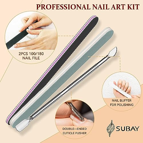 - Affordable and Practical: Our nail art brush set comes with a nail polishing buffer, 2 100/180 grit nail files, a dual-head cuticle pusher, and a polish cloth, allowing you to shape and polish your nails, as well as remove cuticles, giving you the smoothest nail surfaces before starting your nail art. Buy the most practical nail art tool set at the most affordable price!