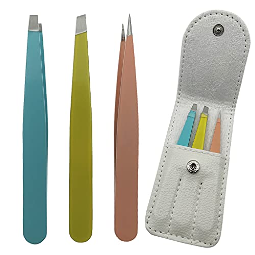 - 3 Styles of Eyebrow Tweezers:contain 1xFlat Tweezer,1xSlanted Head Tweezer and 1xPointed Tweezer.Removing ingrown hair,plucking eyebrow hairs,Meet your daily needs, solve most tweezing issues.